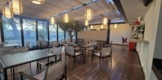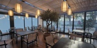 A warm and inviting café space designed with natural textures, soft lighting, and an open layout. The blend of wood finishes, greenery, and large windows creates a relaxed atmosphere perfect for socializing and everyday comfort.