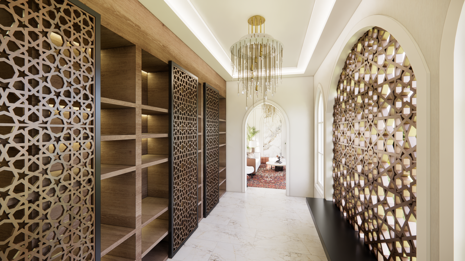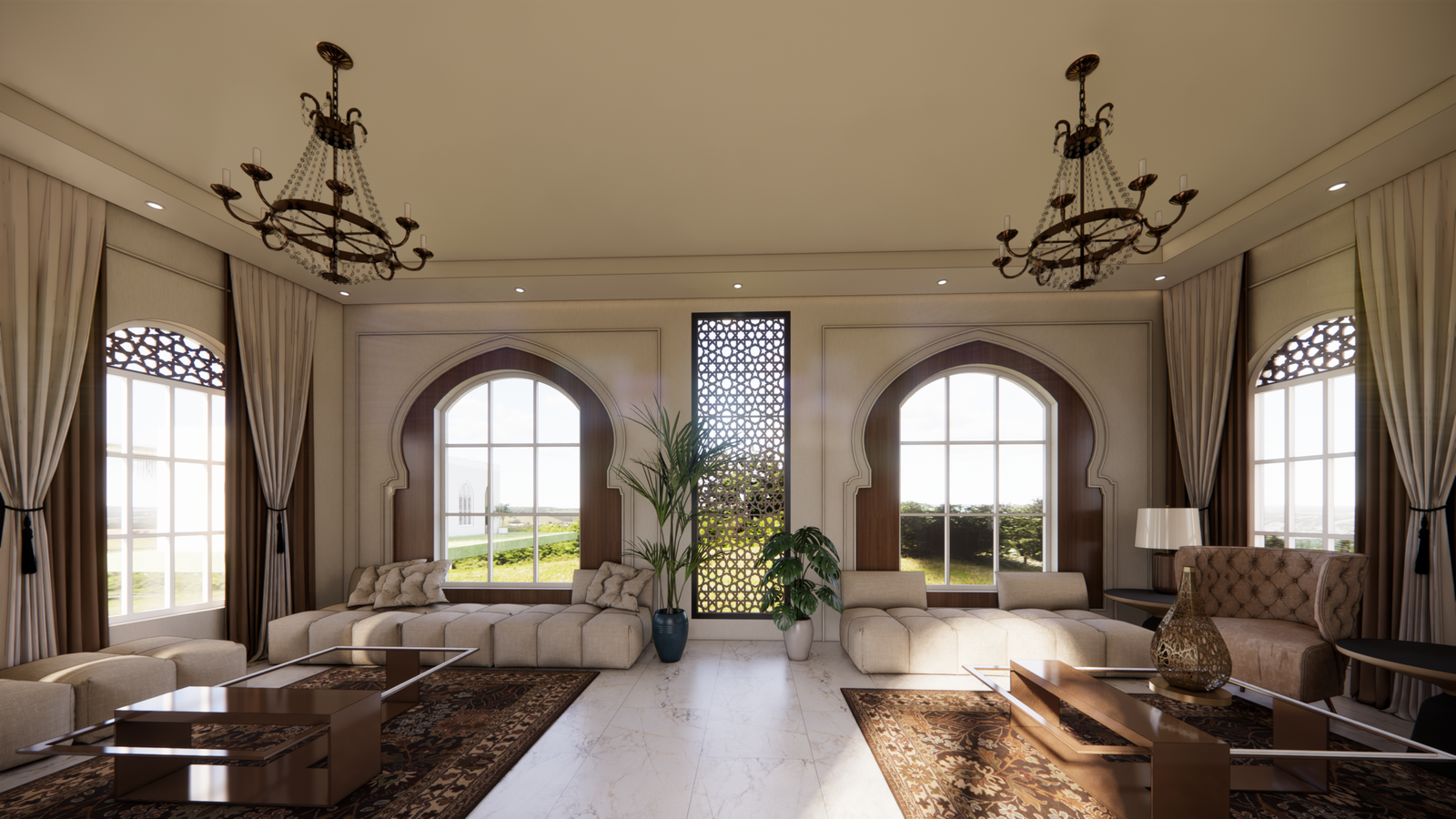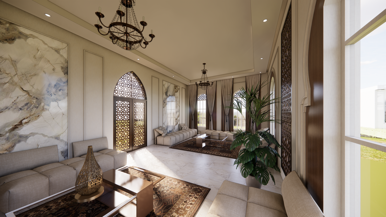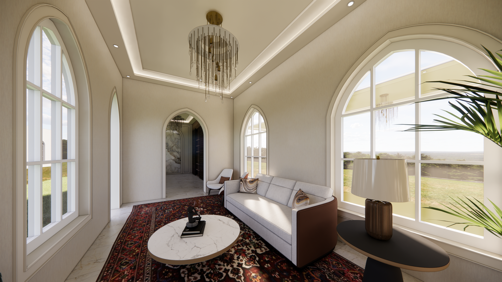 A refined blend of classic elegance and modern simplicity, featuring intricate detailing, warm materials, and balanced design. The space creates a welcoming and sophisticated atmosphere, perfect for both relaxation and social gatherings.